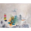 NEITHER HERE NOR THERE series of paintings is the result of this reflection. With a play between representational and abstraction, unfixed and concrete, confusion and wonder, I seek to chronicle different liminal climates. My aim is to create environments as visual embodiments of liminality and hybridity. Through a range of media used in the paintings, I create an unstable, ambiguous atmosphere that reflects and reminiscences upon my transitional experiences. There is no linear narrative in the work, but an intermingling of empty or chaotic surfaces with recognizable elements that emerge or submerge from these fields, incorporating a feeling of perpetual motion. Electric poles, industrial machinery, a building, a boat, a tree, or a fire, could be landmarks, or they could be elements that marked moments in my life. For the viewer, they are visual and/or narrative points of departure, or perhaps arrival. I often use the de-collages technique, a tearing down action that can be related to the separation, isolation, and negotiation occurring in a transitory experience. By channeling the same enthusiasm as a child has when discovering new things, I seek to combine media in innovative and unconventional ways, to diversify the materials used in my practice and learn what each one of them has to offer.